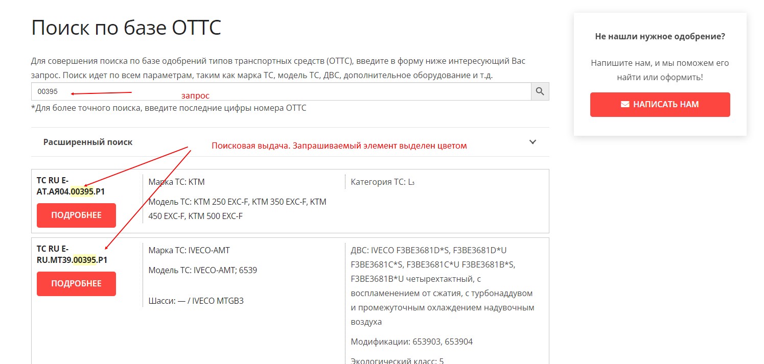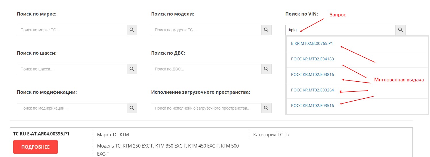 Активный поиск, это поиск по VIN коду. Достаточно ввести первые 4-6 символов VIN кода, для отображения поисковой выдачи ОТТС, в которых указаны данные VIN коды.